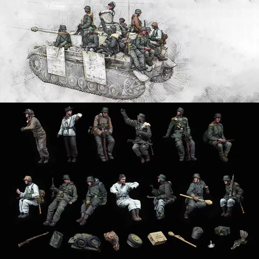 1/35 Resin Figure Unpainted Model Kit, World War II military theme, (13 soldiers, no tanks) Unassembled and unpainted GK,