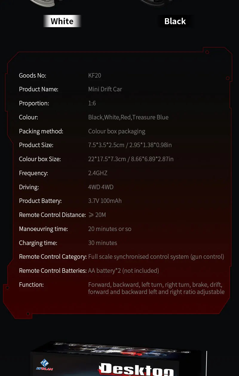 Function:Forward, backward, left turn, right turn, brake, drift,forward and backward left and right ratio adjustable