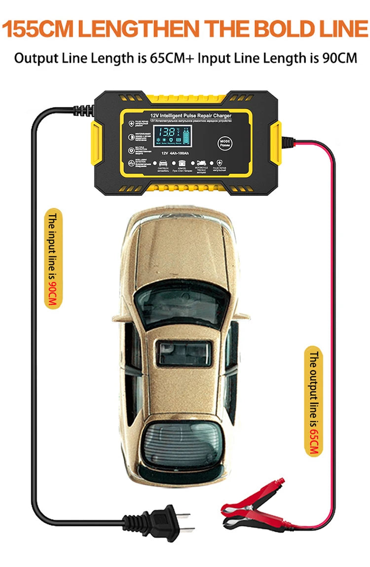 12V 6A Full Automatic Car Battery Charger Power Pulse Repair Chargers Wet Dry Lead Acid Battery Chargers Digital LCD Display