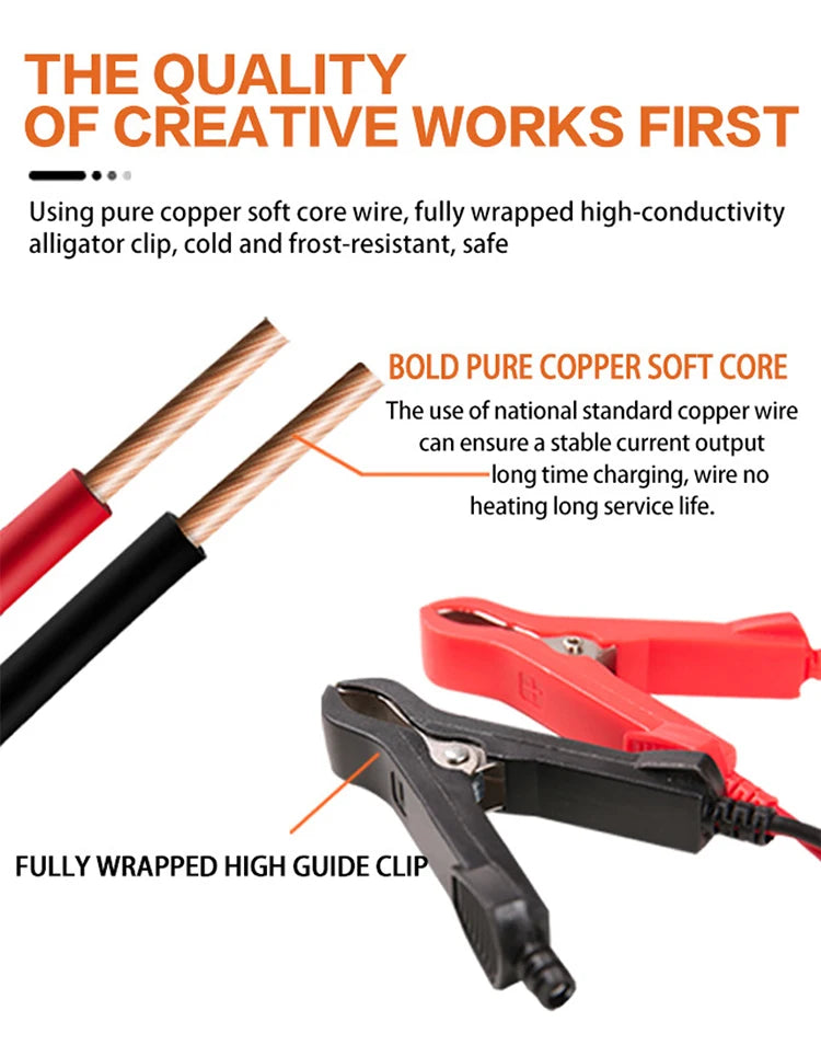 • Wet Dry Lead Acid Element :Equipped with a wet dry lead acid element, this charger ensures optimal battery charge, improving your vehicle's performance and longevity.