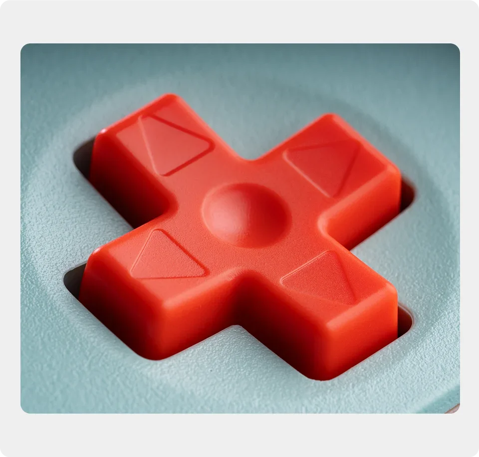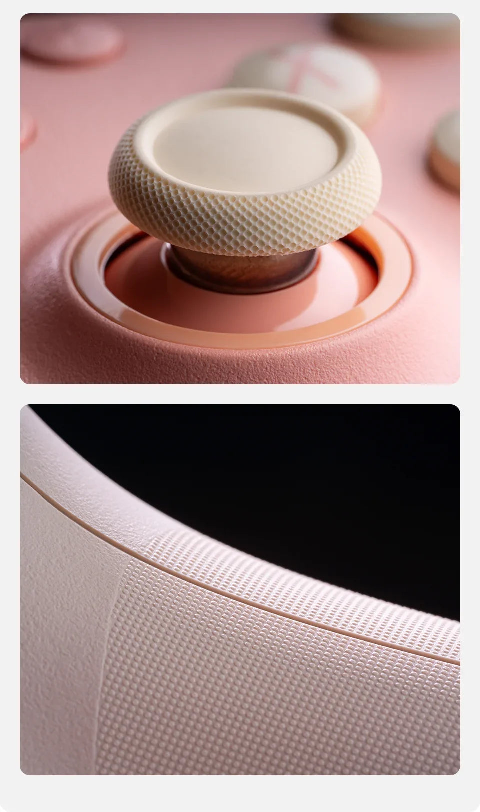 Custom button mapping. Wear-resistant metal joystick rings. Mode switch button.