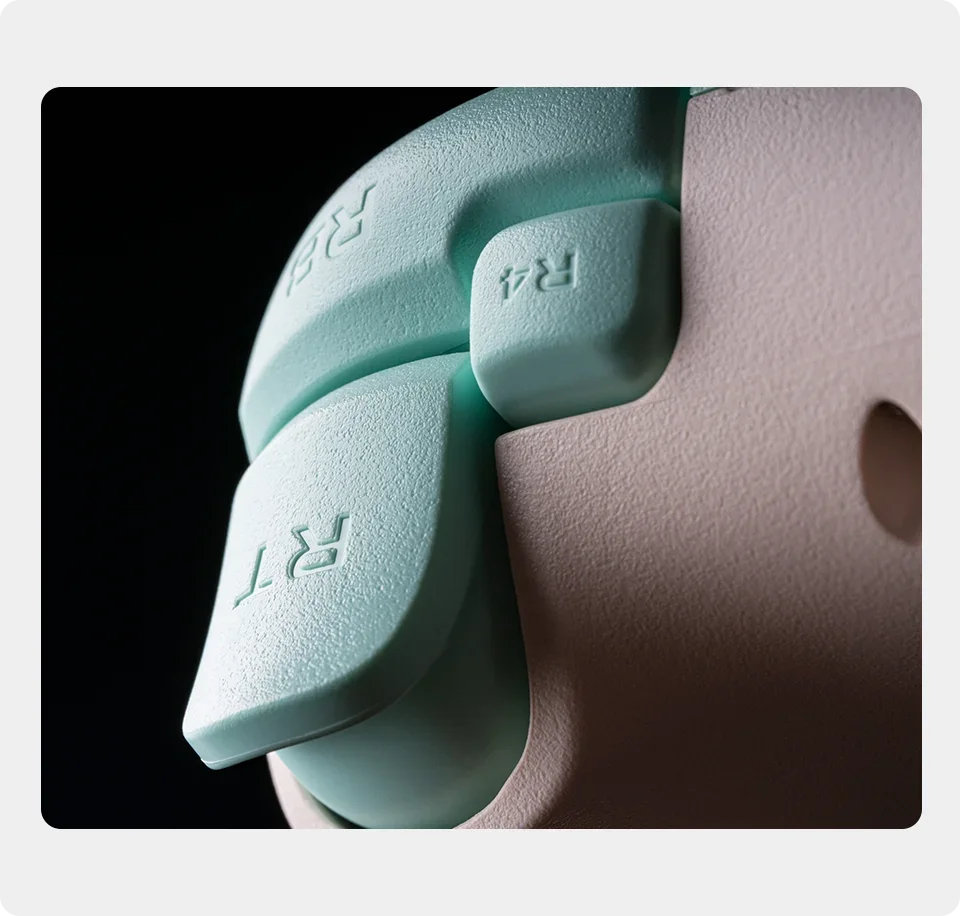 Recalibrated for a clicky but smooth feel. Light yet tactile.