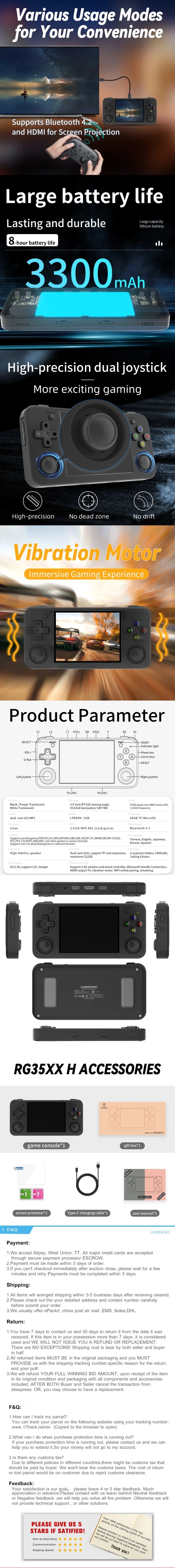 ANBERNIC RG35XX H Handheld Game Console Linux 3.5 inch IPS Screen H700 Retro Video Games Player 3300mAh 64G 5528 Classic Games