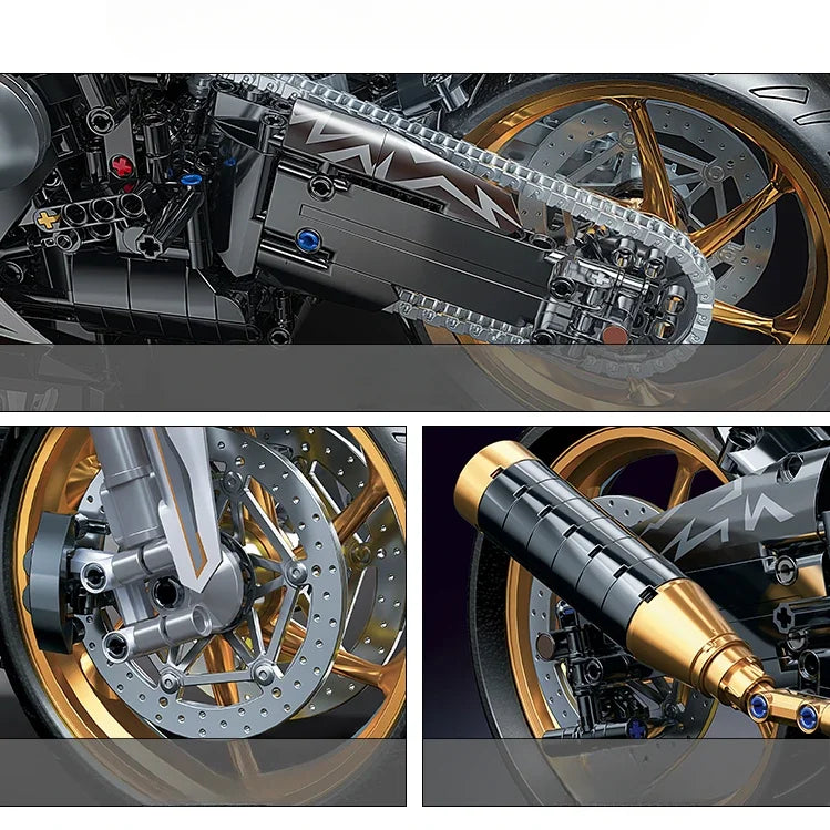 NEW MOC Technical Platinum Motorcycle Model Building Blocks Kit for Adults Display Motorcycle Set for Adult Kids Birthday Gifts