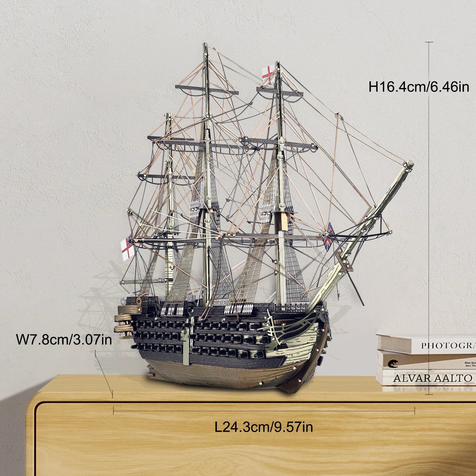 Piececool 3D Metal Puzzles HMS Victory Ship Model Jigsaw Set Assembly Model Kits for Adult Brain Teaser DIY Boat for Collection