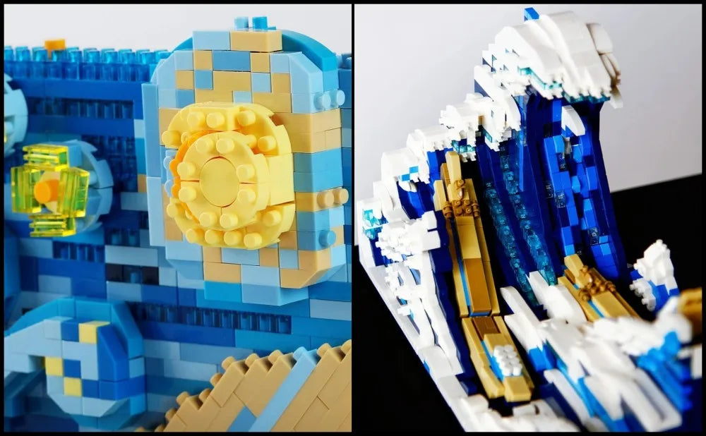 World famous painting Kanagawa surfing starry night ukiyo-e puzzle building block decoration creative assembly toy gift