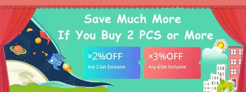 Good news !!! Buy any 2 pcs ,you will get 2% discounts. Buy any 4 pcs or more ,you will get 3% discounts.